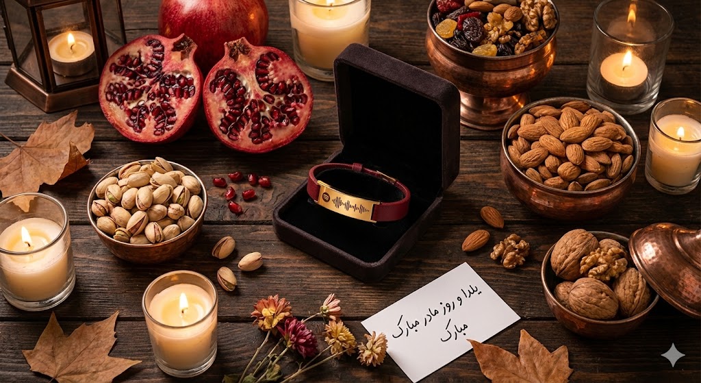 • ایده دوم: صدای جمع شدن خانواده و خنده‌ها را ضبط کنید. یلدا یعنی دور هم بودن و روز مادر یعنی کانون گرما. این صدا روی دستبند، نماد هر دو است.