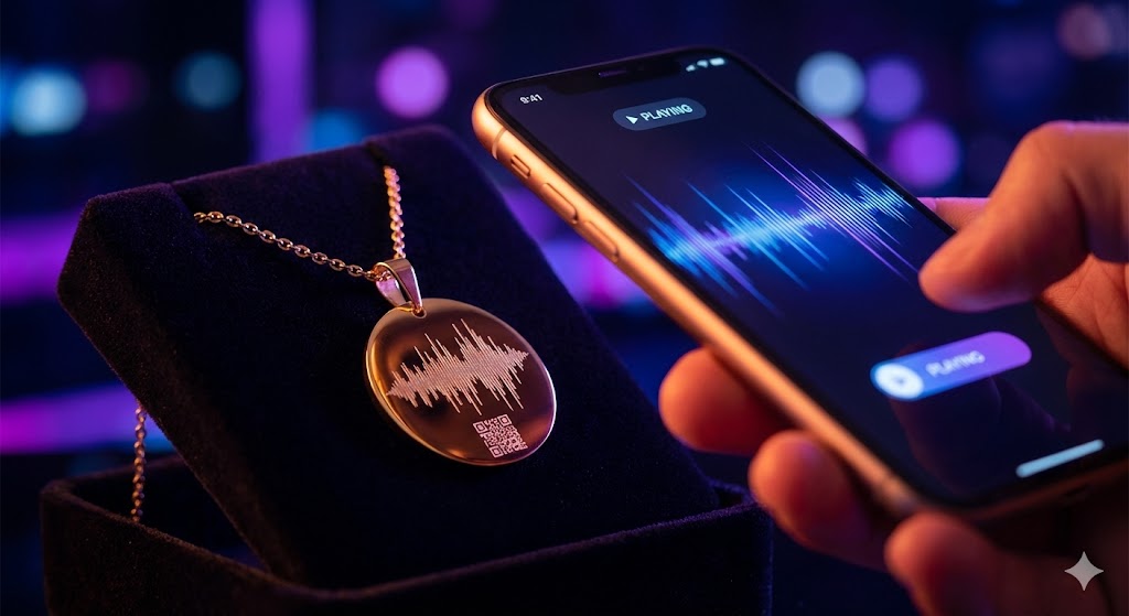 یک کد QR کوچک و ظریف کنار این موج حک می‌شود. این کد، کلید گنجینه احساسات شماست. هر زمان که دوربین گوشی روی این کد قرار بگیرد، فایل صوتی یا ویدیویی که شما قبلاً آپلود کرده‌اید، از سرورهای ابری ما فراخوانی شده و پخش می‌شود.
