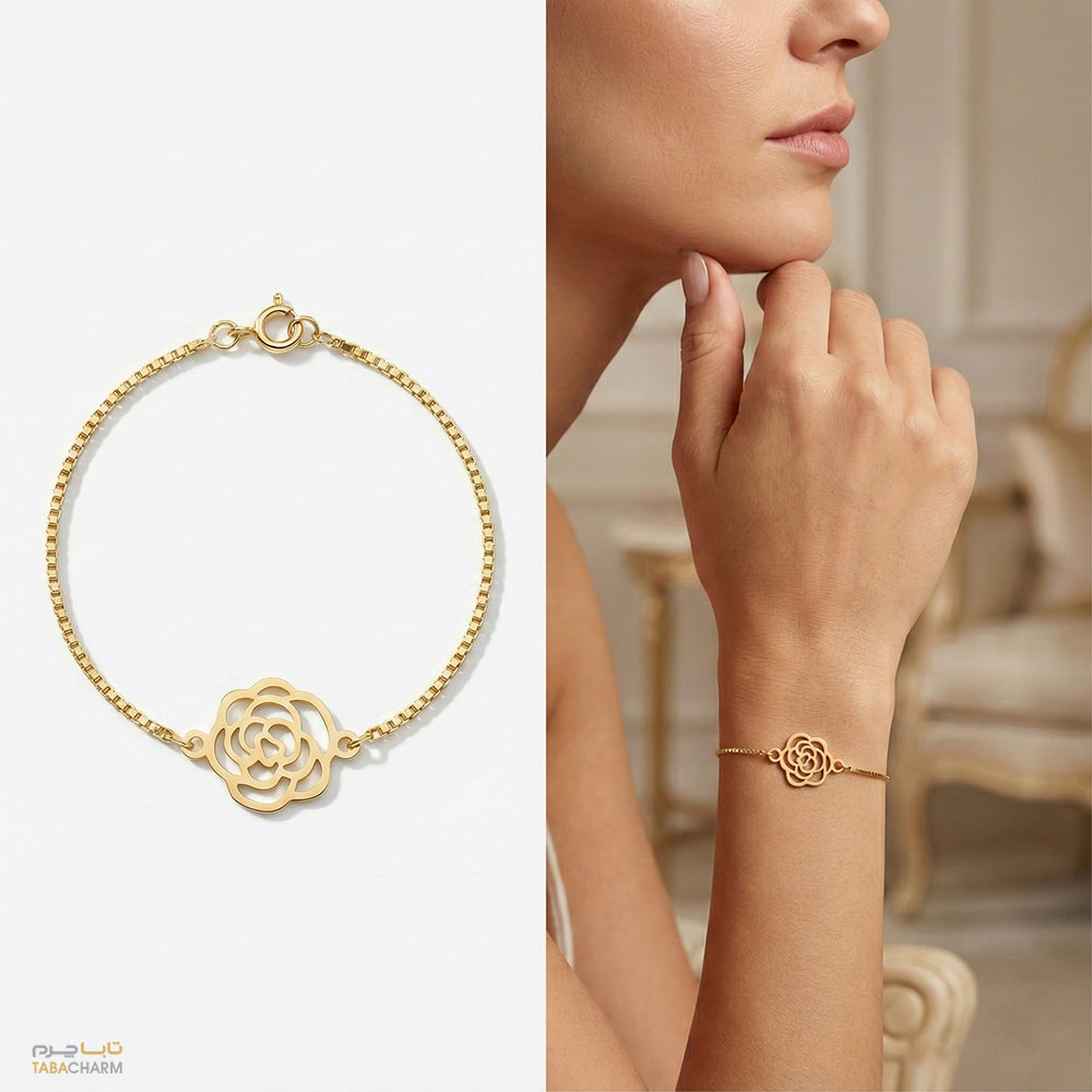 این دستبند با نماد گل، برای هر بانویی جذاب است و پیامی سرشار از محبت دارد:
