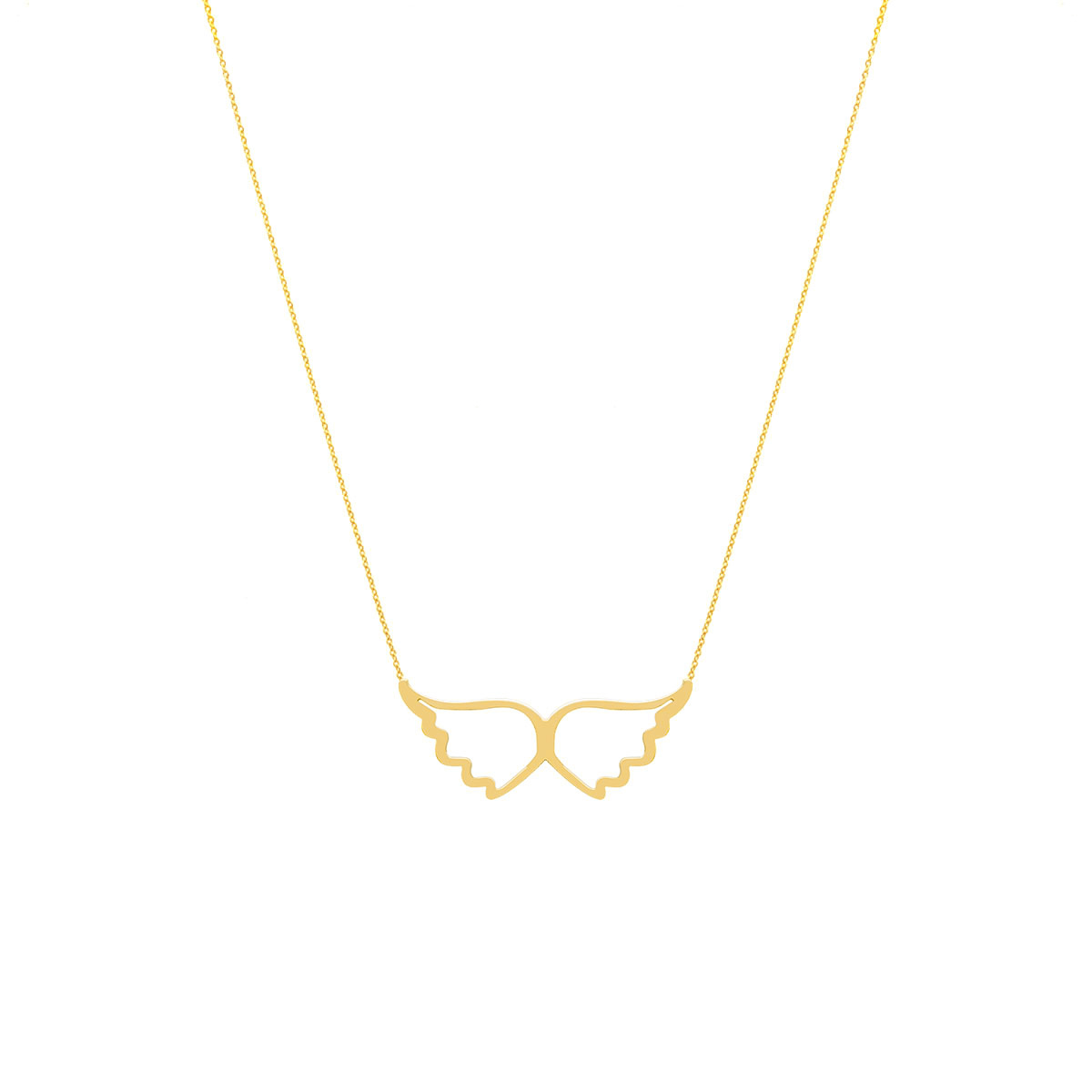 گردنبند طلا از گذشته های دور یکی از پر استفاده ترین و رایج ترین نوع زیورآلات محسوب می شود، به طوری که در گنجینه های یافت شده توسط باستان شناسان، همیشه گردنبندهای طلا بخش بزرگی از آنها را تشکیل می دهند. انتخاب صحیح گردنبند طلا برای خانمها تاثیر مثبت و چشمگیری روی استایل آنها دارد. گردنبند طلا طرح بال فرشته از طلای 18 عیار استاندارد ساخته شده است. این گردنبند زیبا و نمادار میباشد