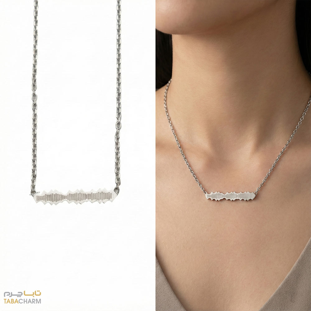 این گردنبند از نقره با عیار 925 و طلا با عیار 750 ساخته شده که علاوه بر زیبایی، دوام و کیفیت بالایی دارد. طراحی آن با الهام از امواج صوتی، جلوه‌ای مدرن و جذاب به محصول بخشیده است. طول گردنبند 45 سانتی‌متر بوده است. ویژگی منحصربه‌فرد این گردنبند، قابلیت بارگذاری فایل صوتی و ویدیویی و پخش آن با اسکن بارکد روی پلاک قلب آن است. این فناوری نوآورانه، امکان ذخیره پیام‌های صوتی یا موسیقی مورد علاقه شما را فراهم می‌کند و آن را به هدیه‌ای خاص تبدیل می‌کند.